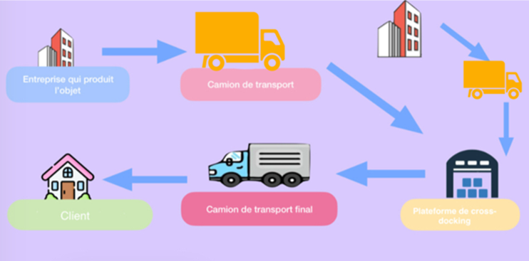Lorsqu’on commande un produit en ligne, on pense rarement au trajet qu’il a parcouru avant d’arriver chez nous. Derrière cette simplicité apparente, il y a un travail complexe d’organisation logistique. Cet article parle des lieux où les colis sont triés et réorganisés avant d’être livrés : les plateformes de “cross-docking” (Figure 1) et a pour objectif de comprendre où installer ces plateformes pour réduire la distance parcourue par les camions et limiter les émissions de CO₂.